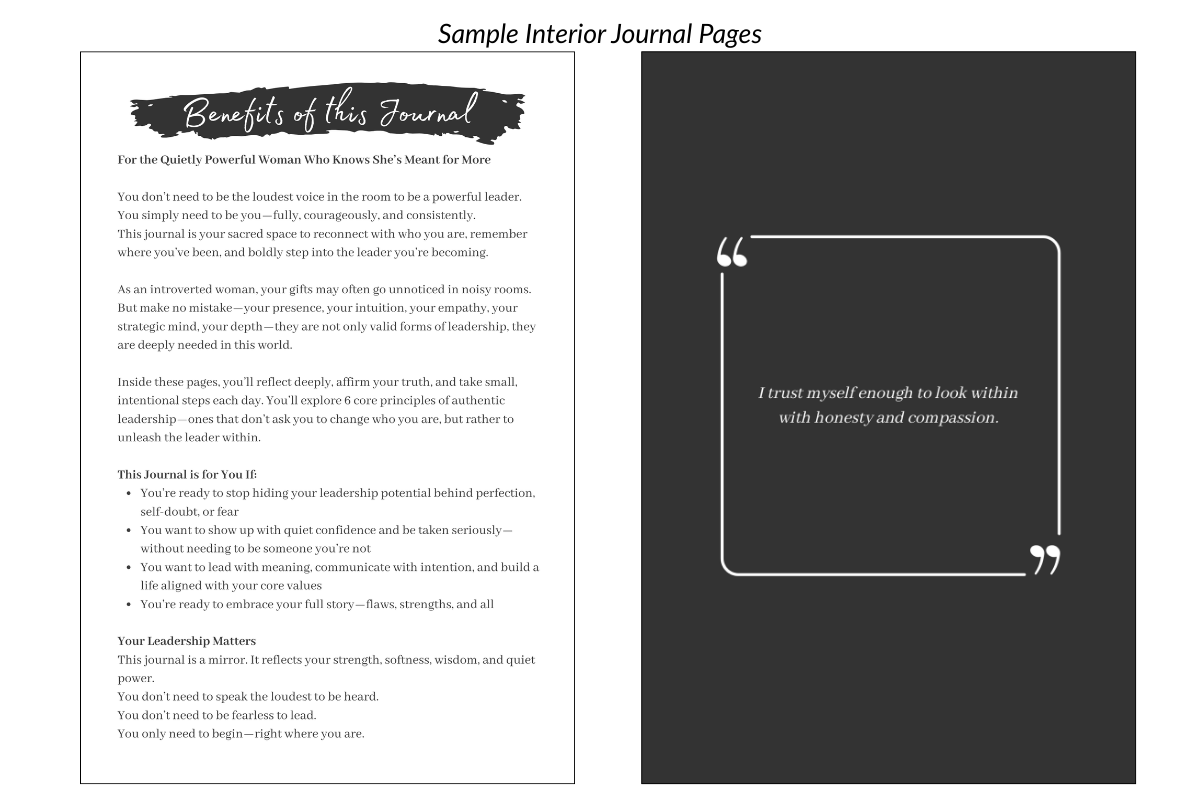 A beautifully designed, premium journal created specifically for introverted women in leadership. Inside you'll find: