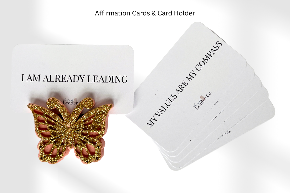 - Affirmation cards for your desk or workspace to ground you in your leadership intention